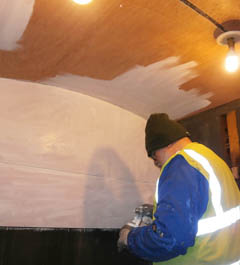 paint to one of the lined compartment ceilings.